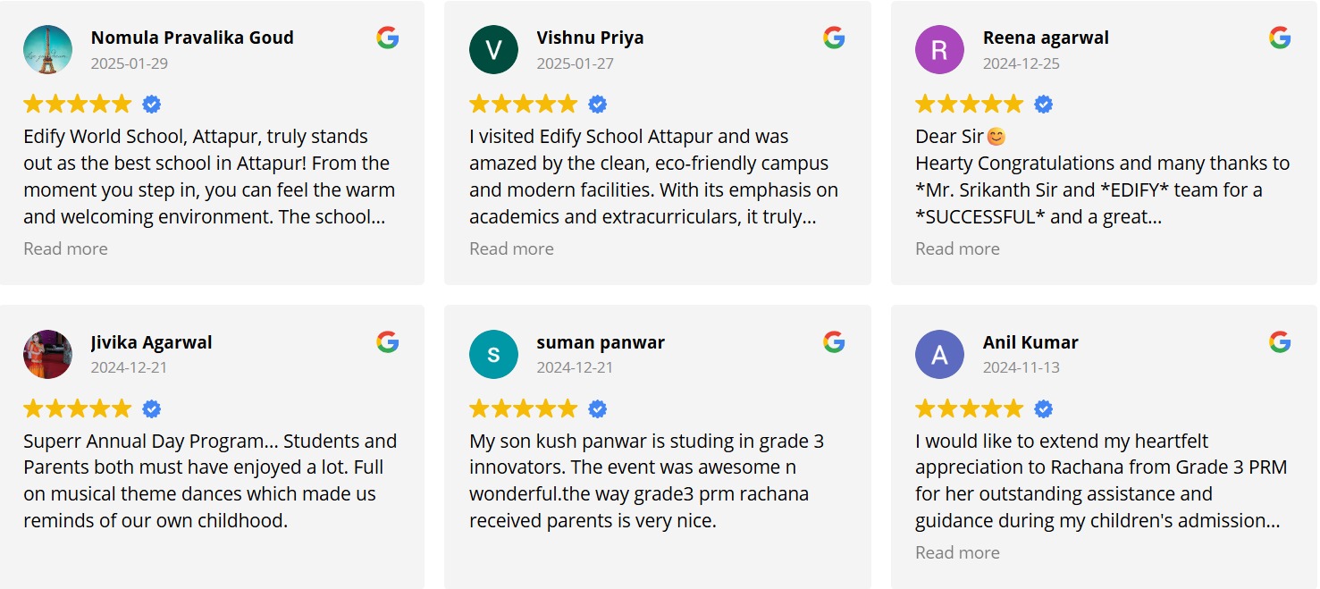 At Edify World School, Attapur, we believe in providing an educational experience that goes beyond textbooks. Our innovative curriculum, experienced faculty, and state-of-the-art facilities create a stimulating environment where students thrive academically, socially, and emotionally. We are dedicated to preparing your child for the challenges and opportunities of the 21st century.